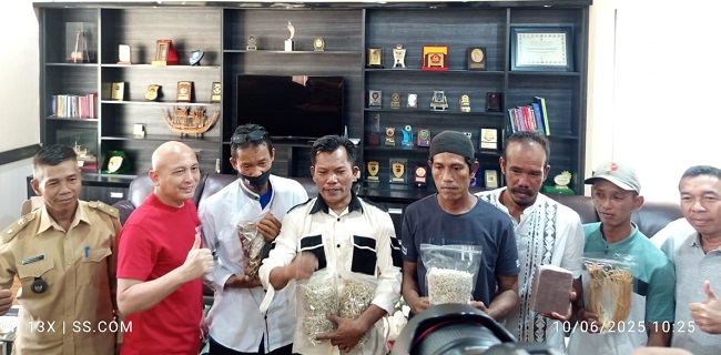Nelayan didampingi Anggota DPRD Bangka Barat dan BPD serta Kades Air Nyatoh menyampaikan aspirasi ke Ketua DPRD Babel, Selasa, (10/6/2025).