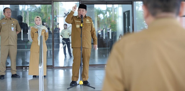 Beritalain.id - BANGKA, MERAWANG. Gubernur Kepulauan Bangka Belitung (Babel) Hidayat Arsani, untuk kesekian kalinya mendatangi Rumah Sakit Umum Provinsi (RSUP) Dr. (HC) Ir. Soekarno, guna menggelar apel bersama pimpinan, dan jajaran di rumah sakit tersebut, Selasa (8/7/2025).