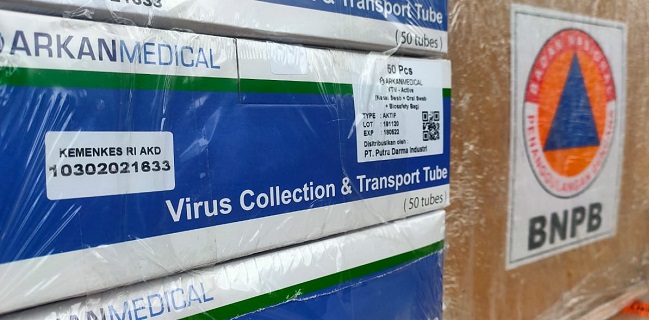 "Hari ini ada sebanyak 5500 unit VTM yang kita serahkan langsung ke Dinkes Pangkalpinang, dimana sebelumnya kita juga sudah serahkan sebanyak 5000 pcs VTM. Jadi total sebanyak 10500 pcs VTM bantuan dari BNPB berupa VTM tersebut," ujar Kepala Pelaksana Harian (Kalakhar) BPBD Kota Pangkalpinang, Izwarhadi, Kamis (4/02/2021) usai penyerahan bantuan VTM itu di halaman kantor BPBD Kota Pangkalpinang.