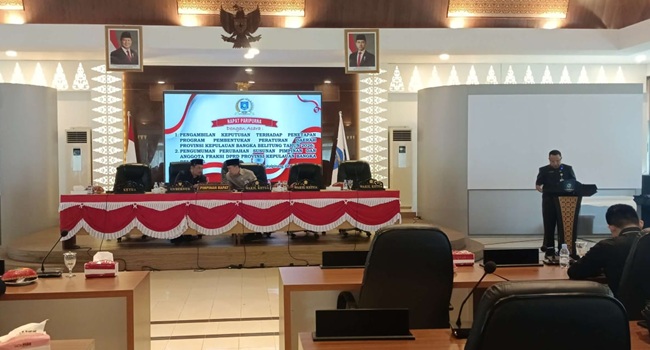 Beritalain.id - PANGKALPINANG. Rapat Paripurna Dewan Perwakilan Rakyat Daerah (DPRD) Provinsi Kepulauan Bangka Belitung pada Selasa (4/11/2025) menunda dua agenda penting, yakni Penetapan Program Pembentukan Peraturan Daerah (Propemperda) Tahun 2026 dan Perubahan Susunan Pimpinan dan Anggota Fraksi Demokrat Kebangkitan Bangsa (FDKB).