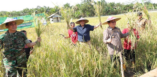 Panen raya yang dilaksanakan Kelompok Tani Setia Marga ini, merupakan hasil dari program pembukaan lahan sawah seluas 5 hektare dari total 40 hektare yang tersedia atas inisiasi Kementerian Pertanian bekerja sama dengan TNI.