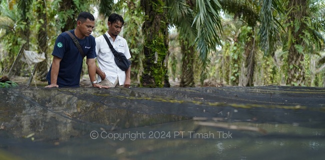 Melalui Program TJSL PT Timah memberikan bantuan usaha kepada Kelompok Usaha Sumber rezeki untuk renovasi kolam ikan dan pembelian pakan dan bibit.