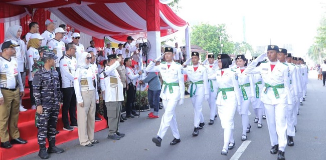 Beritalain.id - PANGKALPINANG. Secara resmi, Gubernur Kepulauan Bangka Belitung (Babel) Hidayat Arsani didampingi Ketua TP PKK Babel, Noni Hidayat Arsani melepas pawai karnaval baris berbaris dengan mengibarkan bendera start yang di mulai di Titik Nol Kilometer, Senin, (1/9/2025)