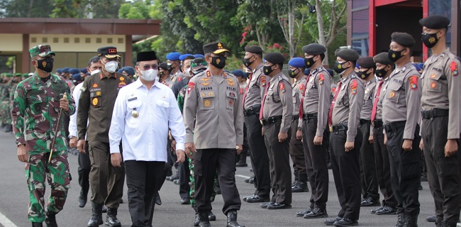 "Laksanakan penegakan hukum sebagai upaya terakhir “ultimum remedium” secara tegas dan profesional terhadap pelanggar protokol kesehatan yang sudah berulang kali serta oknum-oknum masyarakat yang menimbulkan dampak negatif kesehatan secara luas dan menciptakan klaster baru Covid-19," ungkap Gubernur saat membacakan Amanat Kapolri.