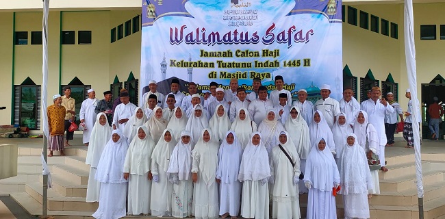 PANGKALPINANG. Beritalain.id - Pemerintah Kota Pangkalpinang menghadiri undangan acara doa dan syukuran (Walimatus Safar) atas keberangkatan Jamaah Calon Haji Kelurahan Tuatunu Indah Tahun 1445 H/2024 M, Minggu (05/05/2024) bertempat di halaman Mashid Raya Tunu Pangkalpinang.