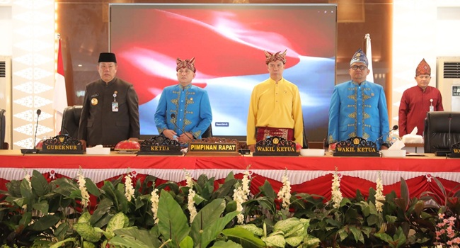 Rapat paripurna dipimpin Ketua DPRD Babel Didit Srigusjaya dan dihadiri Wakil Pimpinan DPRD, Gubernur Babel Hidayat Arsani, Wali Kota Pangkalpinang, para bupati dan wakil bupati, unsur Forkopimda, tokoh presidium, tokoh adat, tokoh masyarakat serta pemangku kepentingan lainnya.