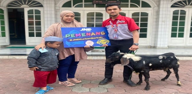 JNE menjelang usianya yang ke-32 tahun pada November 2022 yang akan datang, selain turut membantu masyarakat untuk tetap berkecukupan pangan dengan membagikan daging kurban, juga membagikan hadiah 32 kambing dalam menyemarakan peringatan Idul Adha 1443 H kali, dengan membuat program kuis giveaway #GameSiJoni melalui akun official resmi JNE di Instagram yaitu @jne_id. Periode kuis pun sudah dimulai sejak 6-10 Juli 2022. Setiap pemenang akan mendapatkan hadiah masing-masing 1 ekor kambing kurban, dan mereka pun dapat berbagi kebahagiaan kepada lingkungan sekitar.