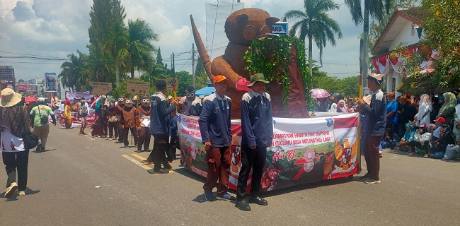 "Kami dari SMAN 1 Namang, pada karnaval tahun ini kami membawakan tema tentang menjaga habitat mentilin. Pasalnya kondisi hutan saat ini sudah banyak berkurang sebagai habitat mentilin," ujar Meilanto Pembina Pramuka SMAN 1 Namang, Minggu (27/08/2023).