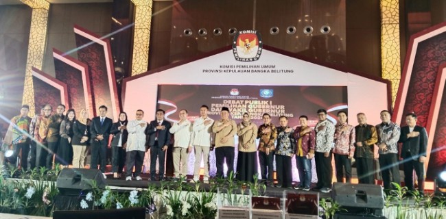 Beritalain.id - PANGKALPINANG - Debat Publik 1 Pemilihan Gubernur dan Wakil Gubernur Provinsi Kepulauan Bangka Belitung tahun 2024 berlangsung lancar dan atraktif antara Pasangan Calon Gubernur dan Wakil Gubernur nomor urut 1 Erzaldi Rosman dan Yuri Kemal dan Pasangan Calon Gubernur dan Wakil Gubernur nomor urut 2 Hidayat Arsani dan Hellyana di Novotel Bangka Hall And Convention Centre Pangkala1n Baru Bangka Tengah.