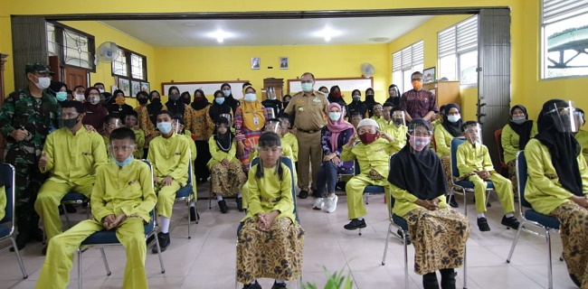 BERITALAIN.ID, Berita Terkini Belitung - Gubernur Kepulauan Bangka Belitung, Erzaldi Rosman bersama Ketua TP PKK Provinsi Kepulauan Bangka Belitung, Melati Erzaldi bercengkrama dengan para siswa di Sekolah Luar Biasa (SLB) Negeri Tanjung Pandan Belitung, Jumat (6/11/20).