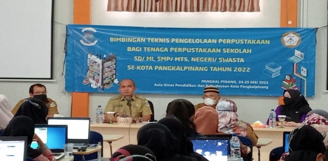 Beritalain.id --- PANGKALPINANG. Walikota Pangkalpinang, Maulan Aklil (Molen) menghadiri sekaligus membuka acara bimbingan teknis klasifikasi dan katalogisasi buku perpustakaan bagi tenaga pengelola perpustakaan sekolah se Kota Pangkalpinang, bertempat di aula ruang Dinas Pendidikan dan Kebudayaan Kota Pangkalpinang, Selasa (24/05/2022).