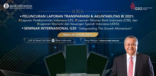 "Mari kita bangkitkan optimisme di tahun 2022 menjadi lebih baik. Mari kita terus bersinergi untuk bersama mengangkat ekonomi kita segera pulih menuju Indonesia maju," ungkapnya sebelum meluncurkan tiga buku laporan transparansi dan akuntabilitas BI 2021 bersama Ketua BPK RI, Agung Firman Sampurna, Duta Besar Uni Emirat Arab untuk RI, Abdulla Salem Al Dhaheri, Menteri Koperasi dan UKM, Teten Masduki, serta Ketua Komisi 11 DPR RI, Dito Ganinduto secara simbolis.