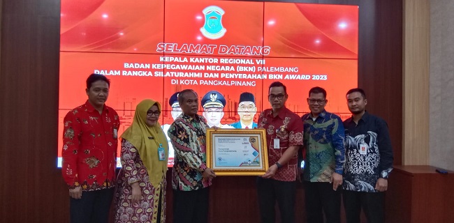 Pemkot Pangkalpinang Terima BKN Award 2023, Diserahkan Langsung Kepala Kantor Regional VII