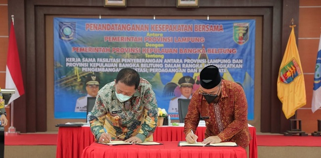 Kesepakatan tersebut tertuang dalam Nota Kesepakatan Bersama yang ditandatangani langsung antara Gubernur Babel Erzaldi Rosman, dan Gubernur Lampung Arinal Djunaidi, di Ruang Pertemuan UPTD DPUPR, Kabupaten Belitung, Rabu (14/10/2021).