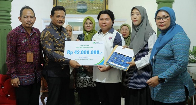 Dalam kunjungan pada Kamis (16/10/2025) siang tersebut, Pj Sekda Fery menyerahkan uang santunan dari ASN Peduli Babel, KORPRI, dan BPJS Tenaker kepada ahli waris alm Fatwa senilai Rp50.900.000, dengan rincian ASN Peduli Rp.3.900.000; KORPRI Rp5.000.000, dan BPJS Tenaker Rp.42.000.000.
