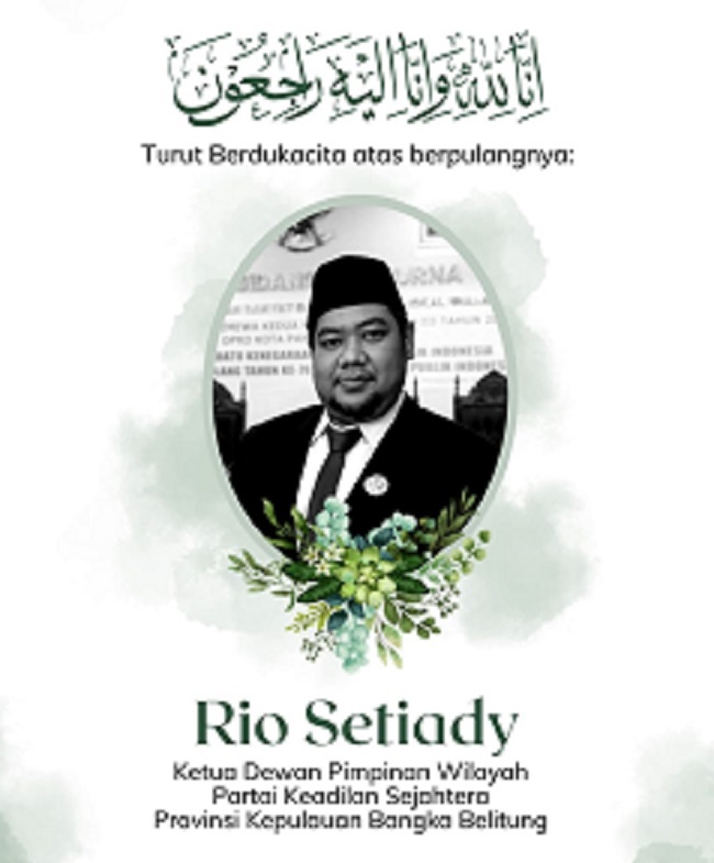 Beritlain.id - PANGKALPINANG. Keluarga besar Partai Keadilan Sejahtera (PKS) Bangka Belitung tengah dirundung duka mendalam atas berpulangnya salah satu kader terbaiknya, Rio Setiady, untuk selamanya. Kepergian beliau meninggalkan duka tak terkira bagi rekan-rekan seperjuangan dan masyarakat yang mengenalnya.