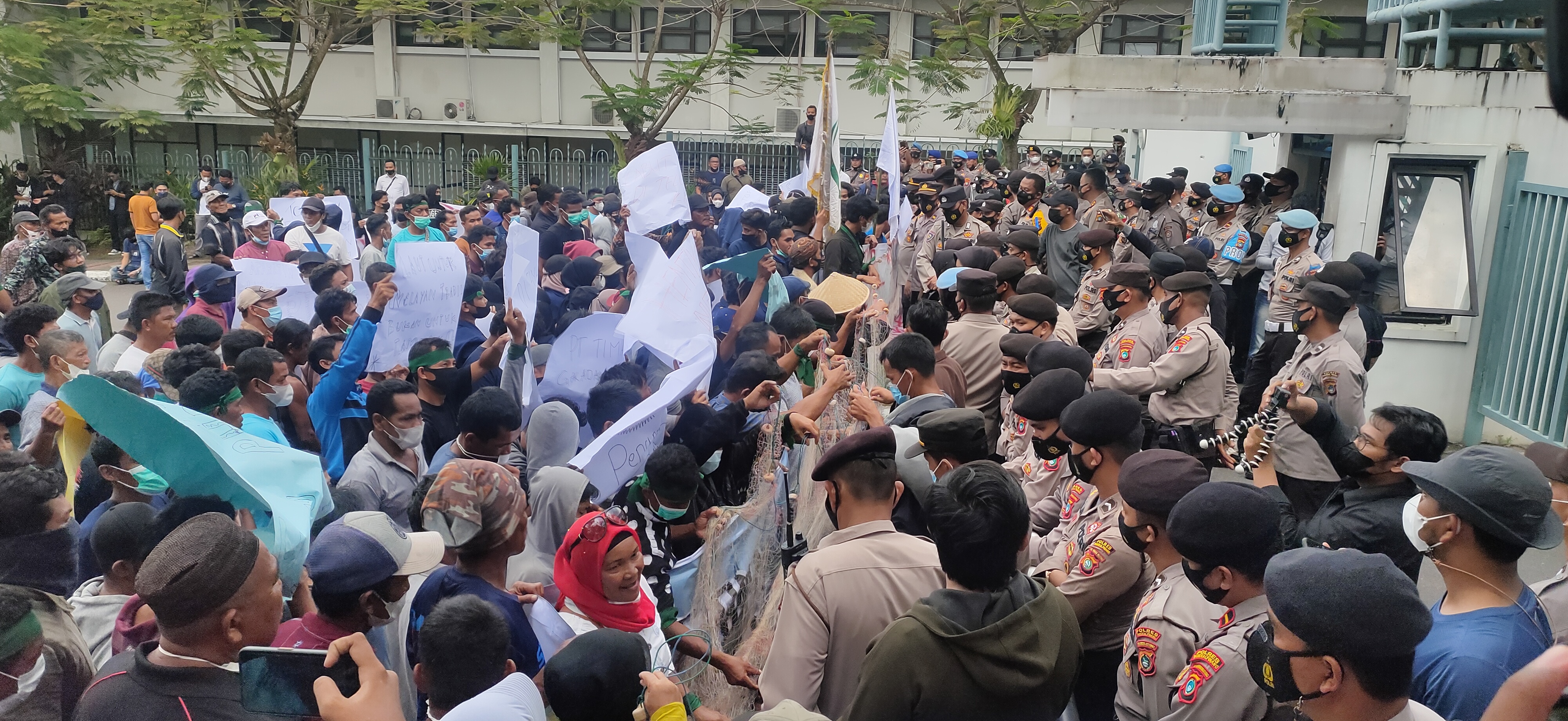 Beritalain.id --- PANGKALPINANG. Masyarakat dan Mahasiswa Babel Bersatu melakukan seruan aksi di Kantor PT.Timah Tbk Pangkalpinang, Senin (22/11/2021).