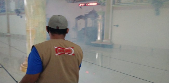 BERITALAIN.ID --- KABUPATEN BANGKA. Upaya memutuskan mata rantai penyebaran Covid-19, Relawan Covid-19 Simpul Bangka Belitung (Babel) melakukan fogging disenfektan di beberapa masjid dan rumah ibadah.