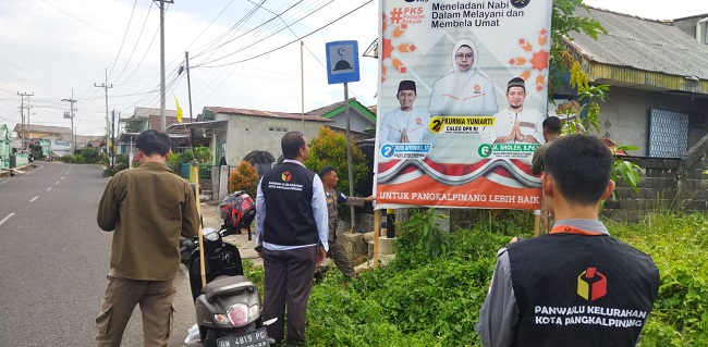 Beritalain.id --- PANGKALPINANG. Satuan Polisi Pamong Praja (Satpol PP) didampingi Bawaslu Kota Pangkalpinang melakukan penertiban Alat Peraga Sosialisasi (APS) Bakal Calon Legislatif (Bacaleg).
