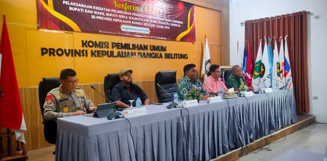 “kami dari KPU Babel menyampaikan kepada publik bahwa tanggal 27 November nanti kita akan melaksanakan pemilihan kepala daerah, tujuan peluncuran ini untuk memberitahu kepada masyarakat bahwa pilkada di babel sudah di mulai,” ungkap anggota KPU Babel Deni, usai konfrensi Pers dengan sejumlah media di ruang rapat KPU Bangka Belitung. Rabu (12/6/2024).