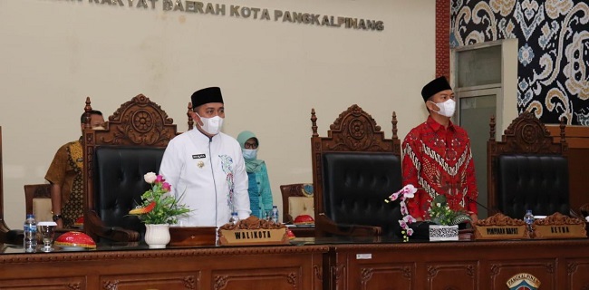 Beritalain.id --- PANGKALPINANG. Wali Kota Pangkalpinang Maulan Aklil menyampaikan Laporan Keterangan Pertanggungjawaban (LKPJ) Kepala Daerah tahyn 2021 pada rapat paripurna ke-16 masa persidangan II di Ruang Sidang Paripurna DPRD Kota Pangkalpinang, Jumat (18/3/2022).